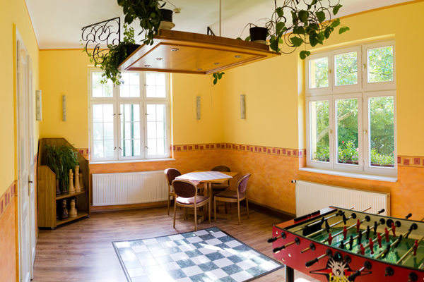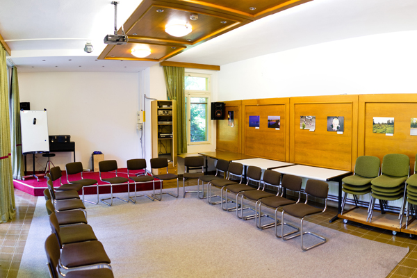 Termek: A földszinten konferencia terem teljes audió-vizuális felszereléssel, étkező, klub csoscsóval, nagy sakkal, a tetőtérben pedig csendszoba található.