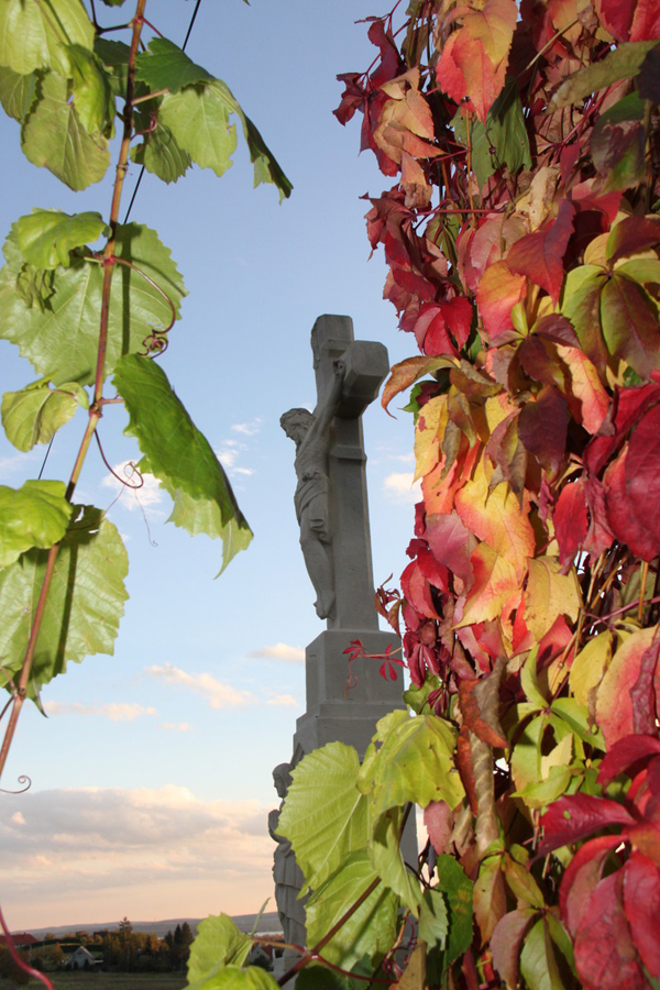 Felfelé haladunk a Kossuth utcán, és a zebránál átkelünk a 71-es főúton. Egyenesen, a Mogyorós utcán folytatjuk utunkat, majd a kereszteződésnél balra fordulunk, a Felsőhegyi utcára. Nemsokára jobbra térünk, öreg mandulafák szegélyezte aszfaltos úton haladunk tovább felfelé, visszatekintve egyre szebb a panoráma. A kőkereszthez érve egyenesen haladunk tovább, présházak és nyaralók közt egyenesen egészen az erdőszélig. Itt jobbra indulunk a földúton, s nemsokára a Szalonnasütőhöz érünk. Az aszfaltúton lefelé sétálva visszaérünk a 71-es úthoz, majd a Kossuth utcán a templomhoz.